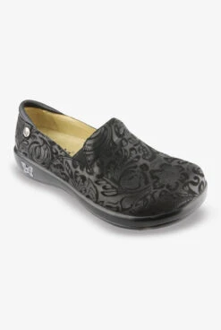 Alegria Women’s Keli Embossed Paisley Nursing Slip On Shoes are accepted by the American Podiatric Medical Association (APMA) – so comfort is assured. The cushiony footbed system is removable to allow for custom orthotics. Non-marking, slip-resistant outsole. Leather lining, suede insole cover. Embossed leather upper in paisley print.
