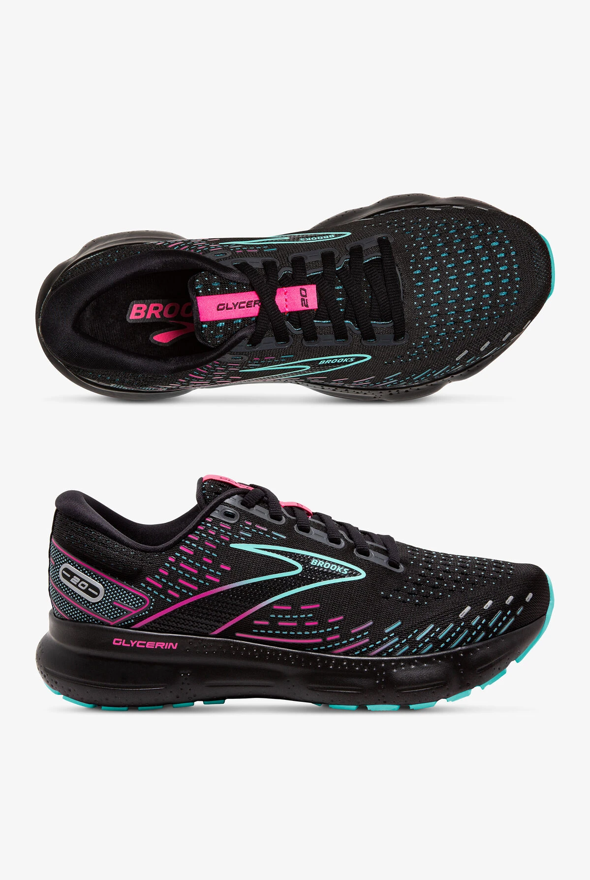 Brooks Women’s Glycerin Black/Blue Light/Pink Athletic Lace Up Nursing Shoes