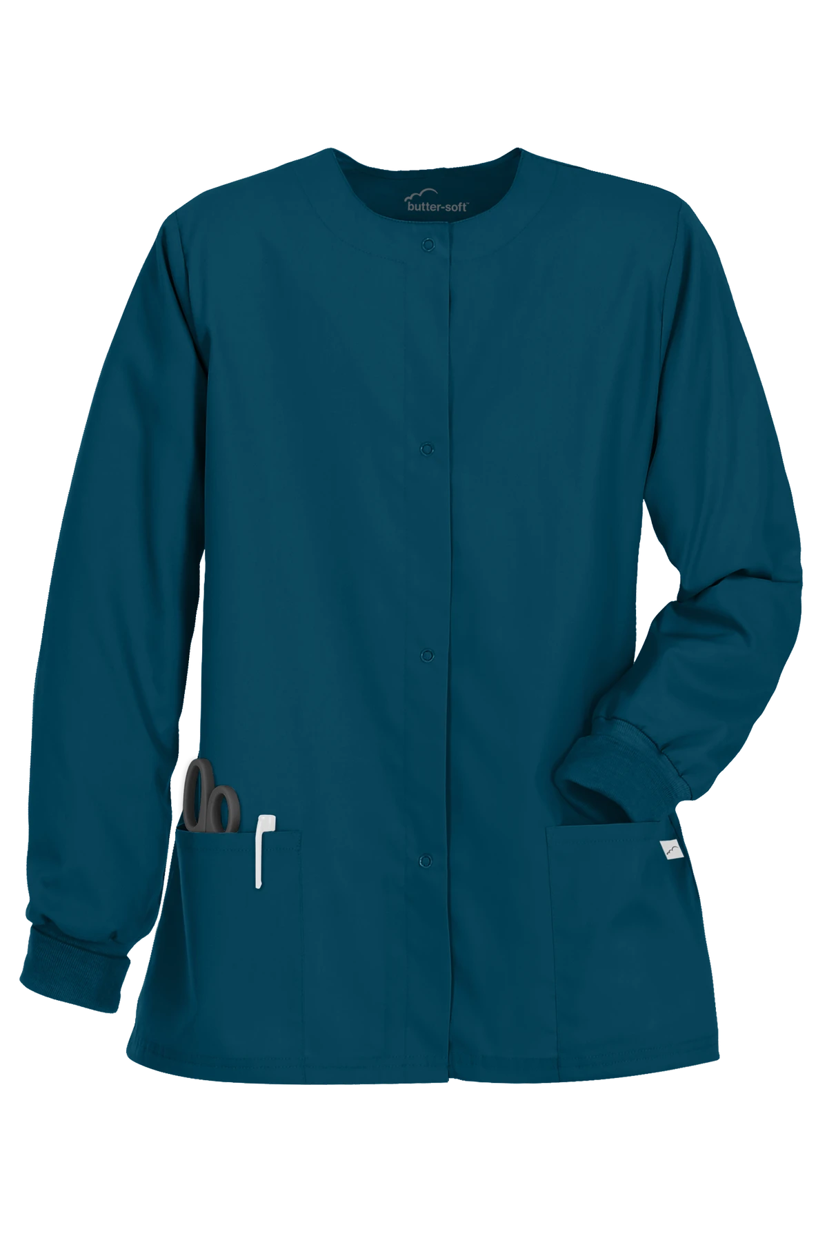 Consider this your go-to warm-up scrub jacket. Simple, clean design is universally flattering and has just enough storage with its two oversized patch pockets. The Butter-Soft scrub collection delivers you the durability you demand and the comfort you deserve in our signature lightly brushed easy-care fabric.
