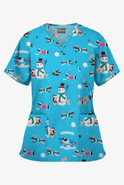 Featuring A Worry-free Faux Wrap Style (sewn Shut!), Our New Scrub Top Offers A Flattering Fit With An Adjustable Tie At The Back. Side Slits Keep It Comfy Around The Hips, And Two Patch Pocket Are There For The Essentials. Holidays And Fun Two Things Everyone Could Use More Of. And Snowmen. And Smiles.