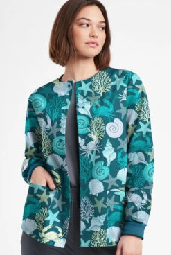 Consider this your go-to warm-up scrub jacket. Simple, clean design is universally flattering and has just enough storage with its two oversized patch pockets and third smaller pocket, ideal for phones, in wearers right side pocket.
