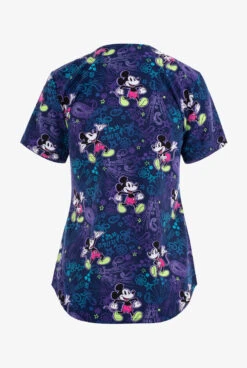 - Features Disney’s iconic Mickey Mouse in a flurry of paisleys, shooting stars, and flowers on a navy background