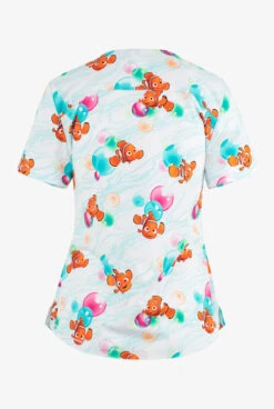 - From Disney’s “Finding Nemo”, Nemo is swimming around colorful polka dot like bubbles on a blue swirled white background