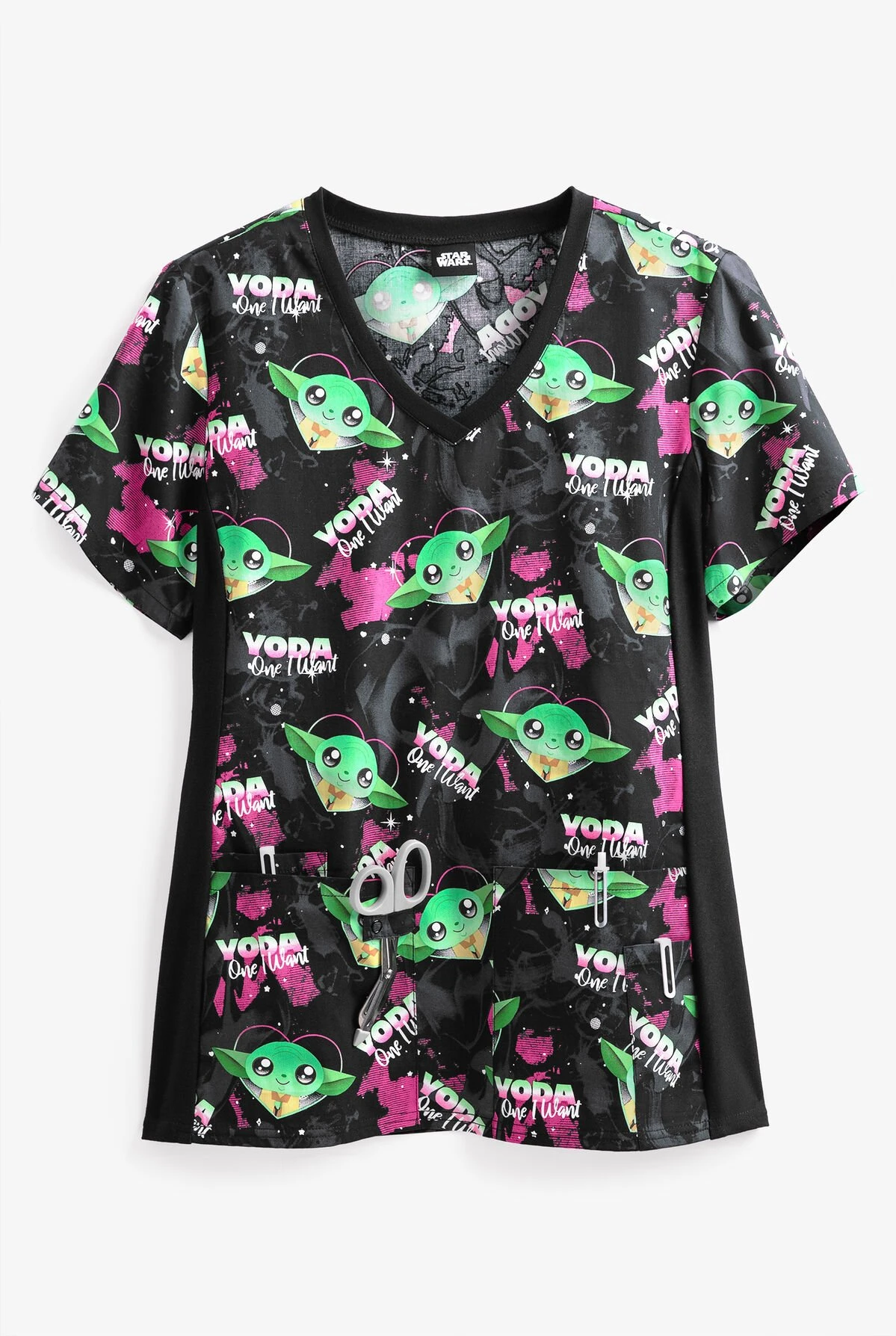 Cherokee Tooniforms Star Wars Yoda One I Want Women’s 4-Pocket V-Neck Print Scrub Top