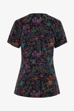 - Colorful flowers, stars and paisleys on a black background