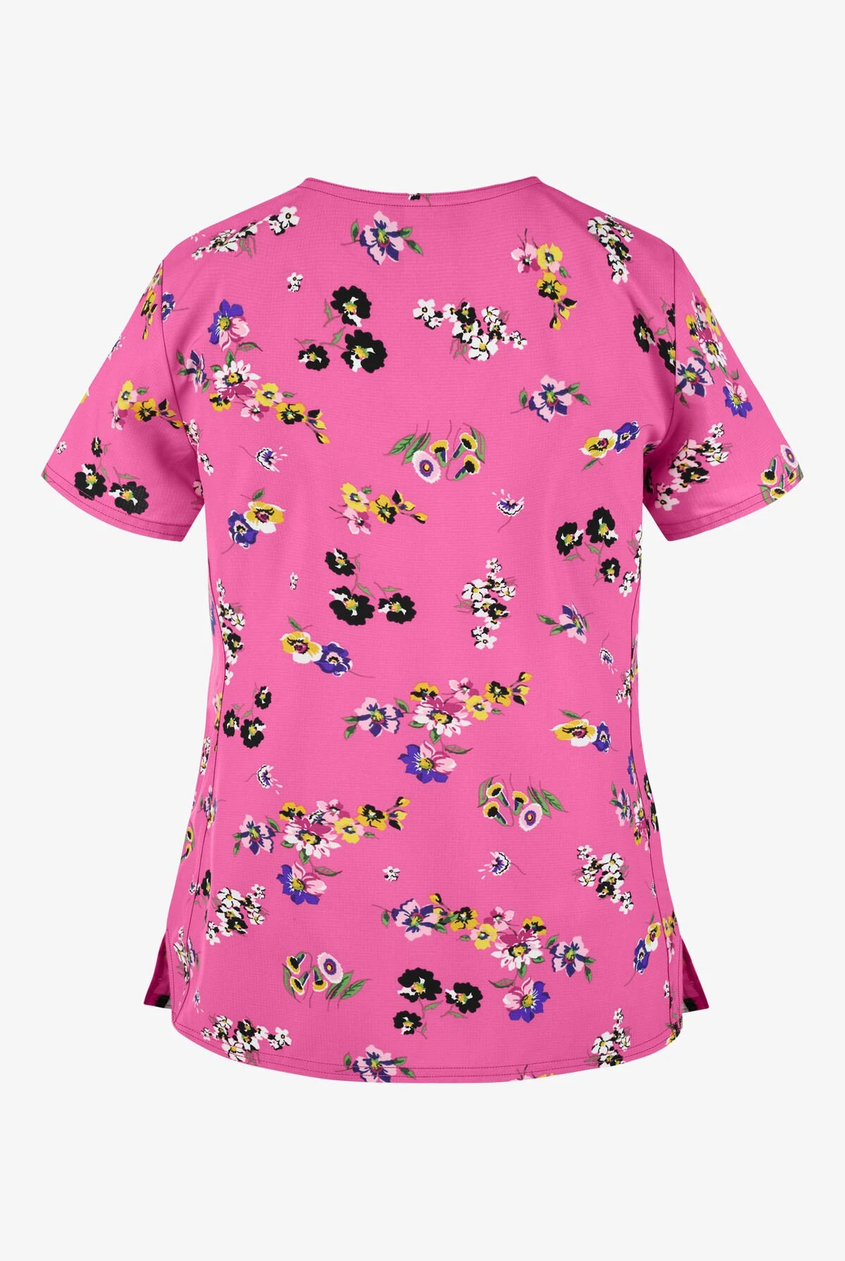 The heartsoul HS721 FLWI Flowering Fields V-Neck Print Scrub Top features Black trim along the neckline and Black and White taping along the front princess seams. For storage, it has three pockets two front patch pockets and one inner pocket on right. Side slits and back princess seams ensure a comfortable and flattering fit through hips. Made of 95/5 poly/spandex dobby.