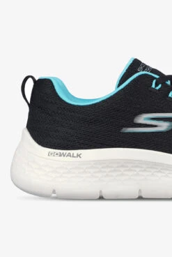 Skechers Performance Go Walk Flex Striking Look Black Athletic Lace Up Shoes feel great from top to bottom. Classic style in breathable mesh. Shock absorbing Aircooled Goga Mat® insole, Comfort Pillar Technology® for added support. Cushiony midsole and dual-density traction rubber outsole for stability. Conscientiously crafted with 100% vegan materials.