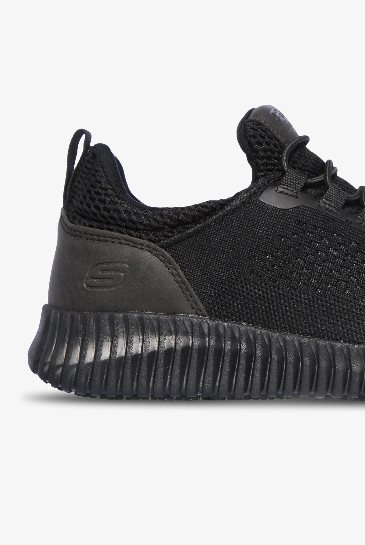 Skechers 77260 work women’s cessnock- slip on athletic shoe with bungee features a Slip Resistant traction outsole and electrical hazard (EH) safe design, EH Safe passed ASTM F2413-2011. It has a soft smooth woven knit sporty mesh fabric upper that is water and stain resistant. The stretch bungee laced front panel gives an easy slip on fit. Its heel panel fabric overlay, fabric heel pull for easy on, padded collar and soft fabric shoe lining makes it a complete buy. Relaxed Fit design for a roomy comfortable fit with memory foam full length cushioned comfort insole. It is flexible athletic-inspired lightweight shock absorbing midsole with a 1 1/4 inch built in heel and is available in black textile and grey textile.