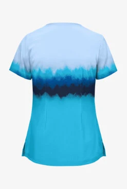 The UA Butter-Soft Painted Stripes Turquoise Women’s 2-Pocket V-Neck Print Scrub Top features a classic fit with a flattering shaped V-neck. It has 2 roomy angled welt pockets. The top also includes side vents for ease of movement during long days. The top has back darts for better fit. Also, it has a double needle top-stitch throughout. Made of 97/3 poly/spandex.