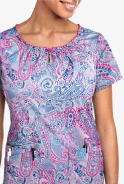 So feminine! From its graceful, gathered neckline to its easy-moving side vents, this peasant scrub top combines fashion and function in one pretty style. 6 pockets give you plenty of storage too. Each piece in our Butter-soft Stretch collection was designed for 12+ hour shifts, and made from easy-care, 2-way stretch comfort fabric.