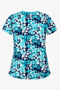 The UA River Floral Navy Women’s 4-Pocket Princess Seam Printed Scrub Top features a v-neckline and front yoke with Turquoise trim. Princess seams, back darts, and side slits create a flattering fit. This colorful scrub top has 2 double pockets to store all of your essentials. The fabric content is 55/45 cotton/poly.
